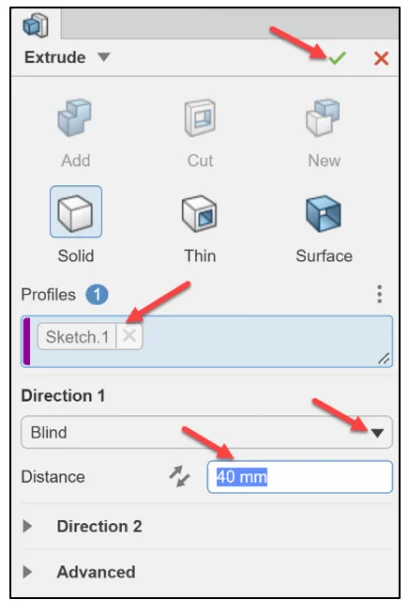 Select Blind for Direction 1 from the drop-down menu. This is similar in SOLIDWORKS to select an End Condition.