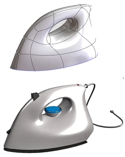 Subdivision surfaces are capable of producing smooth organic forms using just a relatively few control vertices. Unlike standard surface modeling that requires sketches and curves to control the shape, SOLIDWORKS xShape creates high-resolution models by manipulating (push-pull) a lower-resolution “cage” model while using software to subdivide for a smoother surface.