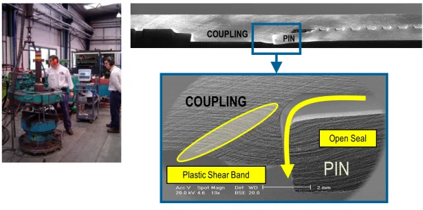 Threaded tubing-casing connections show a different failure mode. Because they are under different types of static loads (tension, compression, internal pressure and external pressure), a permanent deformation appears due to material plasticity. Finally, the problem in the connection is the leakage presented in the seal area.