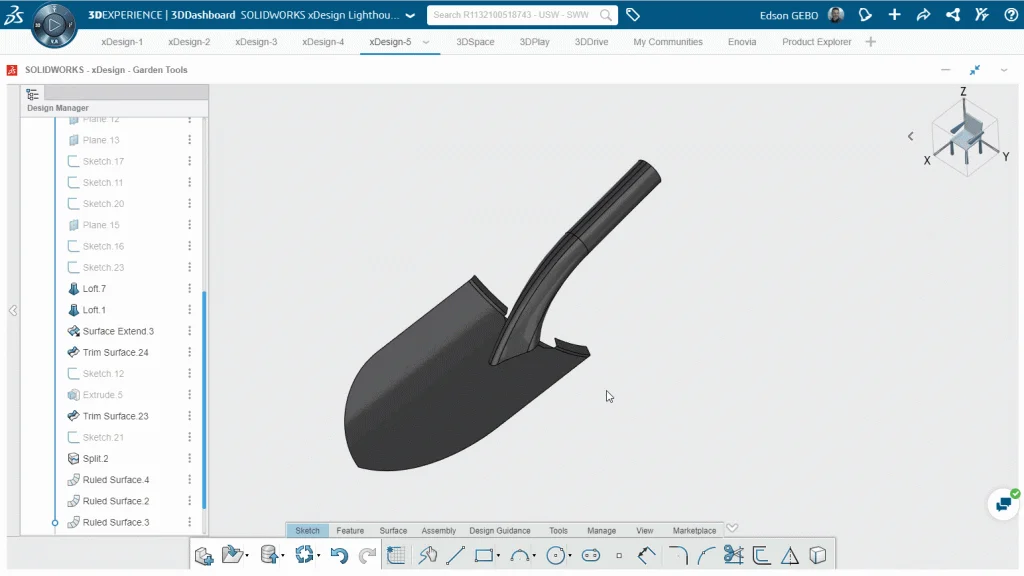 And that is how you create a shovel using only surface features in xDesign…very easy to do!