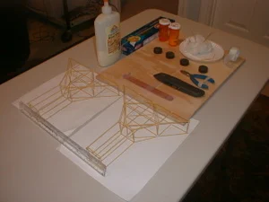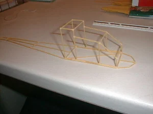 To show you what is possible after trying different things out. The picture down below is a beginning chassis of a helicopter. After forming the outside structure it would be covered in tissue paper and spray coated with a plastic. Light as a feather but my Cockatoo would not donate any for this project. She is keeping a very close eye on me along with my wife.
