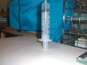 I bring your attention to another method that might work out with the large plastic IV syringe. This is not used for under the skin or intravenous insertions. It has plastic tips. This is an experiment in progress folks.