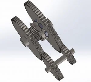 1) ROLLING FRICTION BASED SHAFT DRIVE – Using Extensive modelling features, the drivetrain team successfully designed a rolling friction based driveshaft system, which is more energy efficient than conventional sliding friction based gear train.