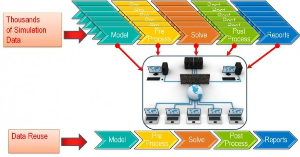 Simulation workflows and methods can be shared across cross functional departments. Any user anywhere can access simulation data anytime.