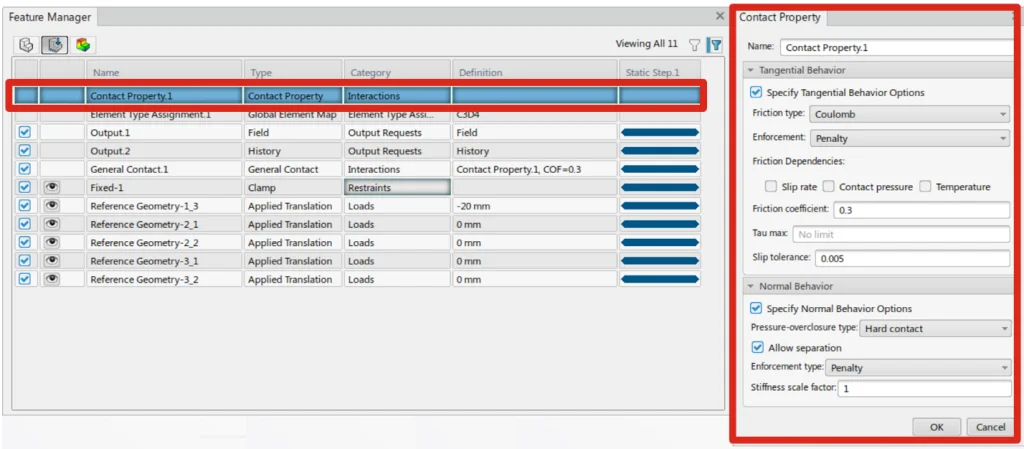 So if I want to specify some advanced contact options, I can simply double click the “Contact Property 1” row as shown below and the corresponding dialog box opens up.