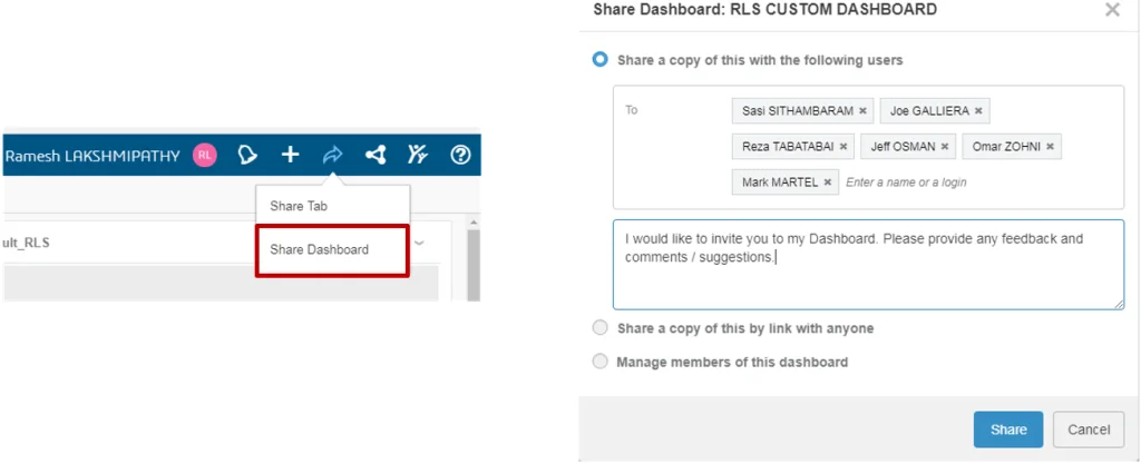 I can even share my dashboard with a member(s) of the community for collaboration on a specific project.