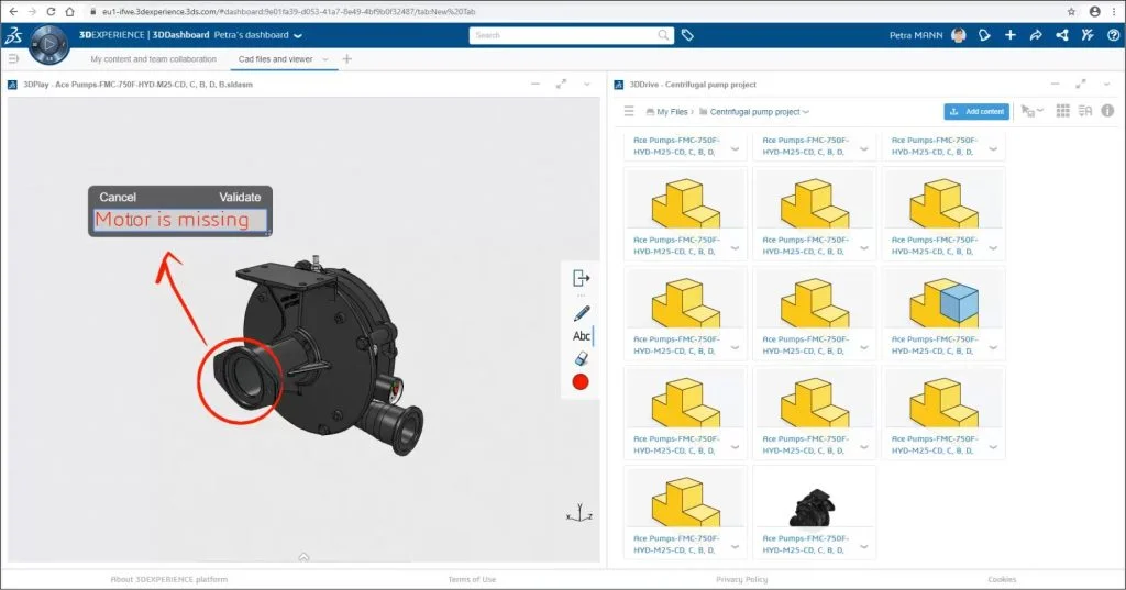 Review CAD Model and Fix Issues Use the 3DPlay app to review, mark, comment, and measure the file and, if you discover issues, let your team know what is going on and assign a task to fix the problems.