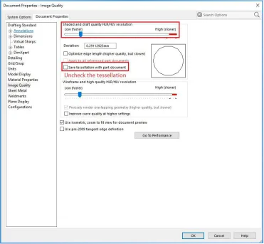 SOLIDWORKS File Size – Save Tessellation Setting