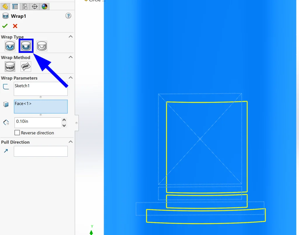 Now we can use the Wrap feature to Deboss our design onto the cylinder.