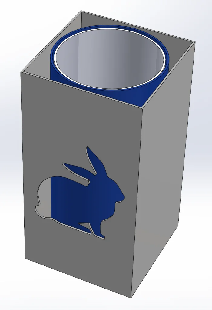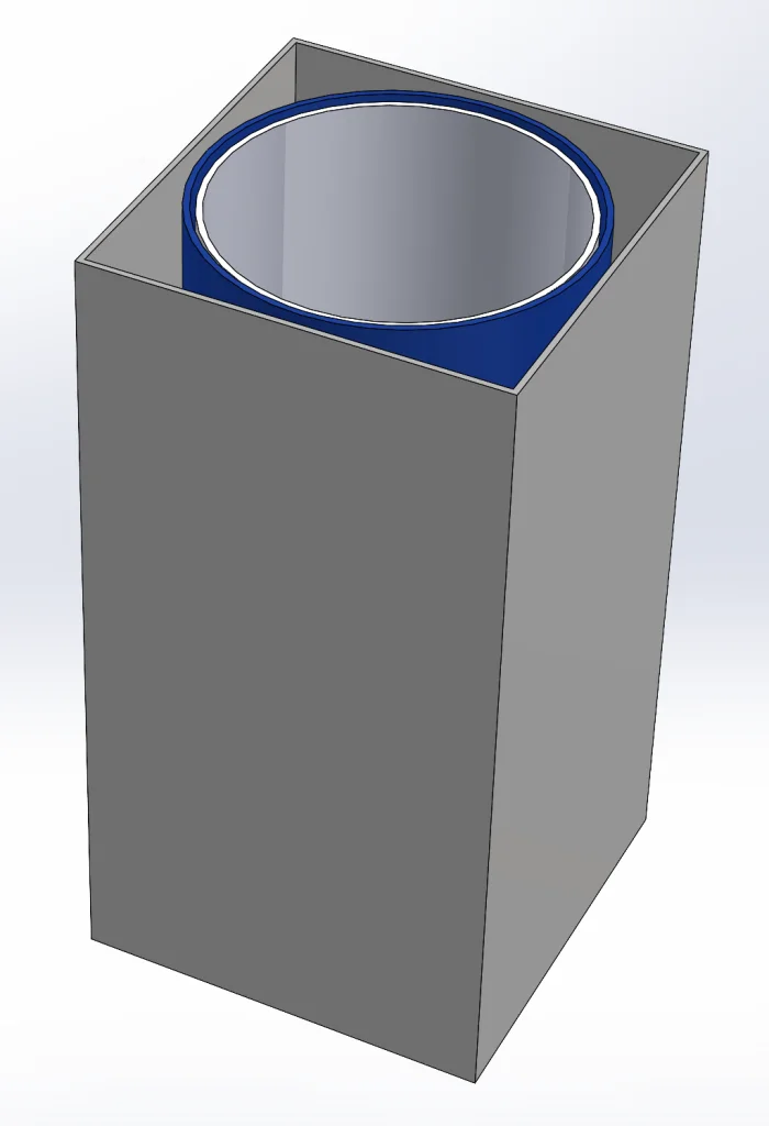 It looks great *except* the illusion doesn’t work well here. The problem is that we need velvet inside our square and outside our hidden cylinder to conceal the secret. For this, we need to use SOLIDWORKS Visualize. Not only will this make everything look super spiffy and realistic, but it is also essential because the velvet appearance doesn’t exist in SOLIDWORKS alone.