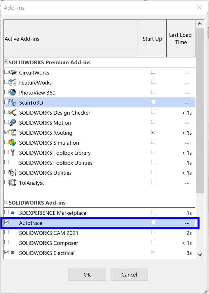 So far, very simple, right? Here’s where it gets fun. You may have noticed that my original 10-year-old self added a bunny cutout to the front. I’d like to do the same here, but slightly more complex and with less work thanks to the Autotrace feature in SOLIDWORKS Premium. First things first, we need to enable the add-in, so let’s make sure we have that checked.