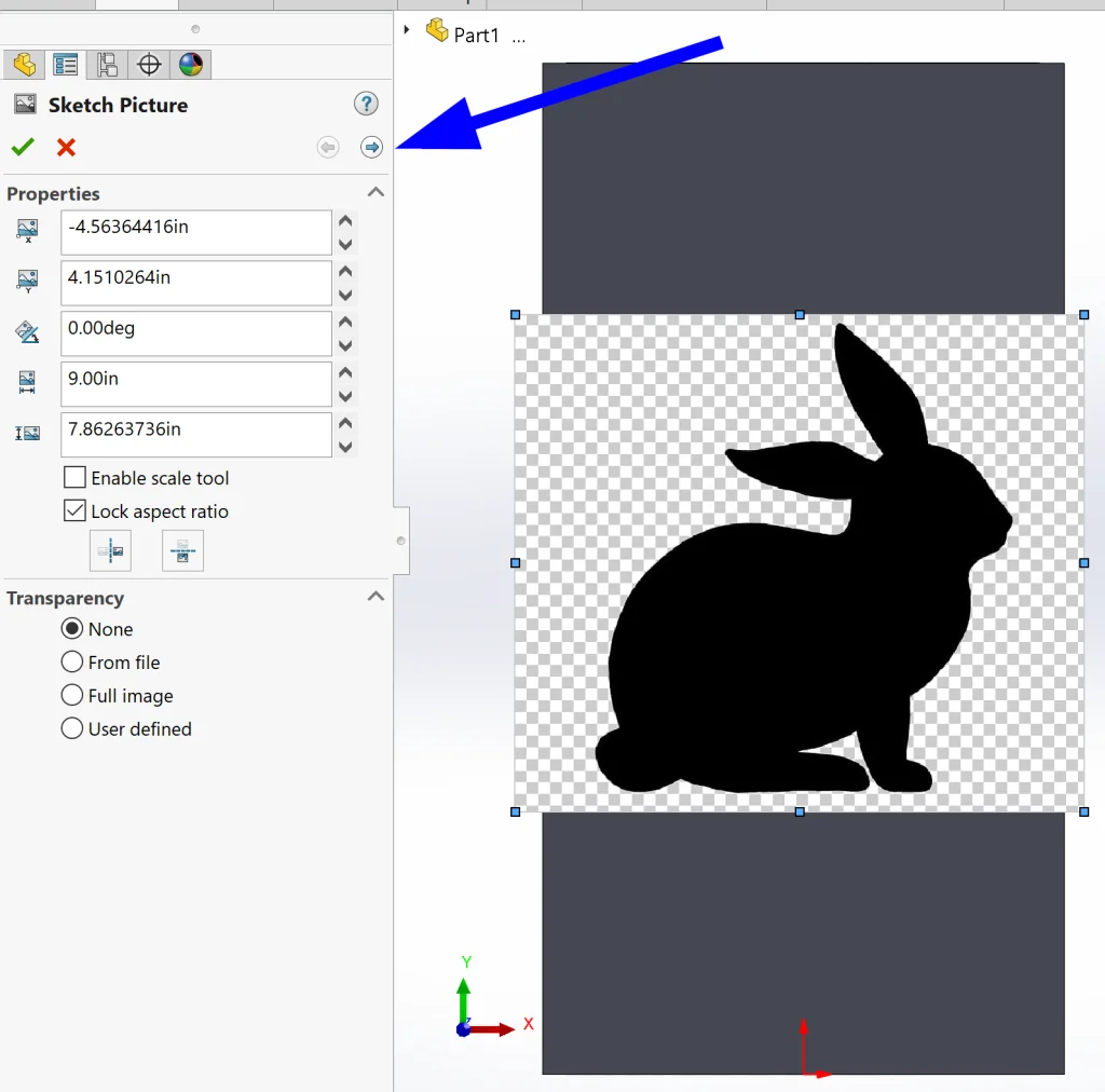 Now we can open a sketch on the front face of our “square” and insert a picture we want to trace from Tools > Sketch Tools > Sketch Picture. Once the picture is inserted, relocated, and resized, we can click the right-arrow in our properties box. This takes us to Autotrace.