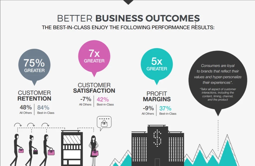 The path to customer loyalty involves personalizing the customer journey. According to Aberdeen research, top-performing brands that spend the time and money to personalize the customer journey reap the following benefits: