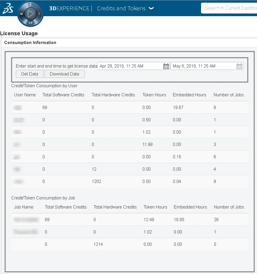 The Credits and Tokens app lets you track the license usage per user and per job during a given period.