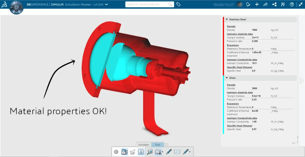 The Simulation Review app lets you assess the material properties of an assembly or a part in 3D from a web browser.