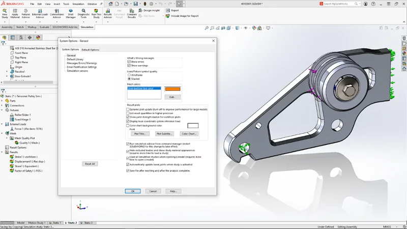 To turn on automatic saving of a model file: Go to System Options > General tab, select “Save file after meshing and after the analysis completes.” Saving a model file automatically after meshing and after the completion of analysis prevents data loss in case of unexpected system crashes or power outages.
