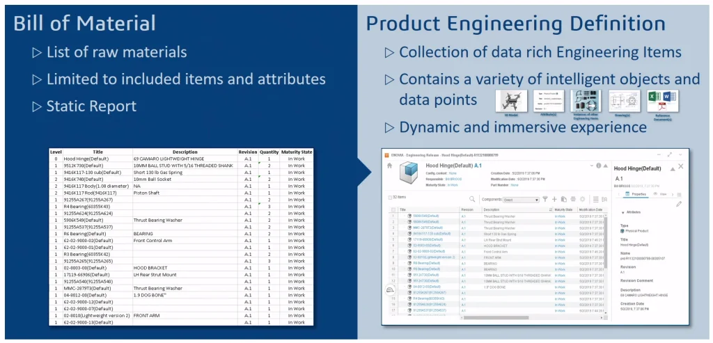 When we think of Bills of Materials or BOMs, we may think of them as just a list or report of items that are required to produce a shippable product. The list is often created and manipulated as a static, text-based file containing data from multiple sources. Microsoft Excel is usually the tool of choice since it’s the lowest common denominator amongst all the different source systems and data silos.