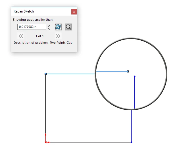 For this simple sketch, it wouldn’t have taken too long to find a problem manually, but for sketches with much more complexity, this tool is a huge time saver!