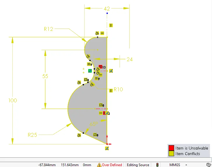 Many of the issues are problems with the sketches. Rather than leaving you to fend for yourself, SOLIDWORKS gives us some pretty neat tools: