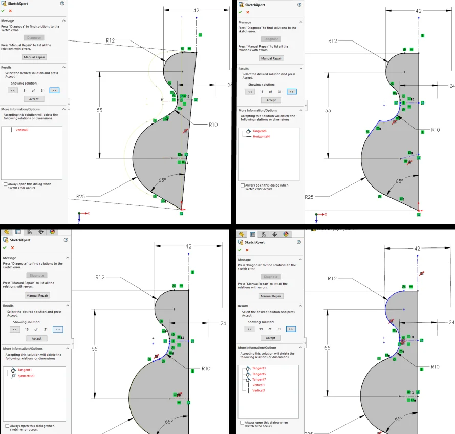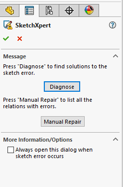 - SketchXpert. On the other side of the spectrum, when you accidentally overdefine a sketch, SketchXpert will diagnose the sketch and actually show you different ways to resolve it. This is one of my favorite sketch tools in SOLIDWORKS. How many times have you been happily sketching along, then all of a sudden: