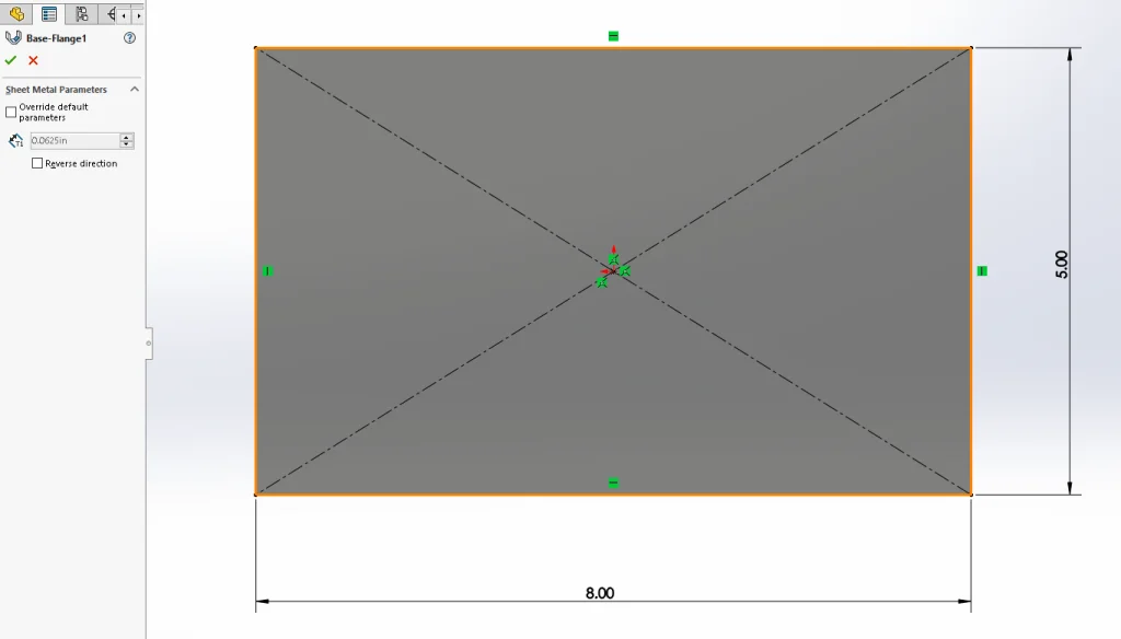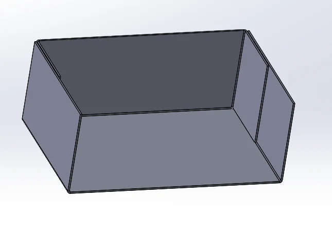 When designing sheet metal parts in SOLIDWORKS, you can create the model as an individual part, in the context of an assembly that contains the components the sheet metal will enclose, or within part document in a multibody environment. I chose to design this cardboard box as an individual part because the shape of the sheet metal part I was creating wasn’t complex and it did not depend on the shape of an enclosed component.