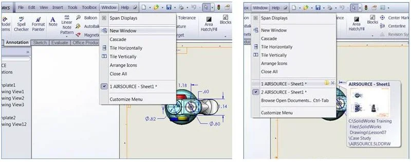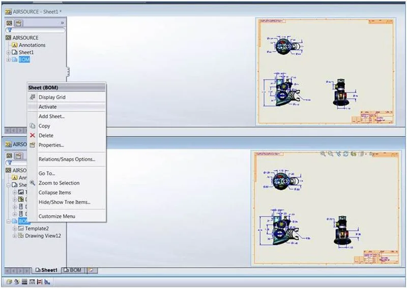 A good example of this is shown in the image above. There are two windows of the same file open, each are showing different sheets. However by making the BOM sheet active in the second window, it also activates, (but doesn’t show) in the other window.