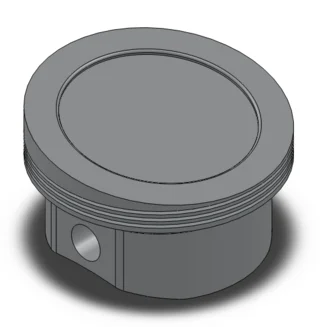 Because the piston is still not carved inside, I decided to scoop out some material (extruded cut ) starting from a sketch on the bottom surface. The thick parts correspond to the place where the pin attaches and are parallel with the surfaces created before. Through a circular sketch on one of those surfaces and another extruded cut I created the holes for the pin.