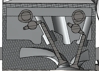 In this part of the build parameters had to be first taken from the reference file and then adapted to fit the virtual model. Parts have been adjusted in small increments to make everything fit, therefore they are probably not that close to the real values but they do the work of showing the movements of the parts inside the cylinder head. To be more specific, because I had to make only one finger that would fit all the 4 lines, I modified the length and the roller diameter to allow the angles between the fingers and the valves to be withing acceptable values, as explained above.