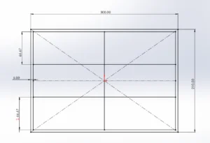 To work this out I set out to create a new sketch in SOLIDWORKS that matched the size of the sheet. I drew a rectangle 300mm by 210mm, I then offset this rectangle by 5mm to allow for any warping in the material or in case I didn’t quite center this within the bed of the laser cutter.  From here it was easy to work out a size per magnet. Adding some symmetry lines first I then created an additional smaller rectangle which I could move around and adjust away from the main sheet until the correct size was found. It turned out I’d be able to get 6 per sheet meaning for the 40 I needed I’d need 7 sheets of material. The engineer in me always needs to know my wastage, this is made easy by the fact SOLIDWORKS can measure area allowing for some simple math to calculate an overall utilization figure of 88%.