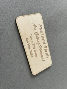 After we finally agreed now was the time to take our next leap into adult life and settling on a suitable date to do so. The first thing we needed to do was tell our chosen guests to keep the date free. A quick google led me to something I hadn’t seen before in the form of a save the date magnet. For me this is a great idea, I’m not a fan of cards or paper stationary and often remark that these are a waste of paper and that no one really looks at them in this digital age. A magnet seems like a great way to keep the date not only in the front of people’s minds but also their kitchen fridge. Now, I could have simply ordered these but always looking to save a few dollars and having the equipment to do so I thought I’d give it a go myself.