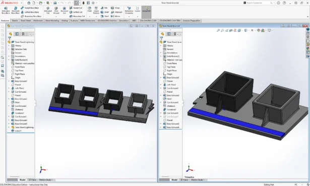 From hand drawings to manufacturing drawings, students build their skills. Nick introduces SOLIDWORKS early in students’ education.