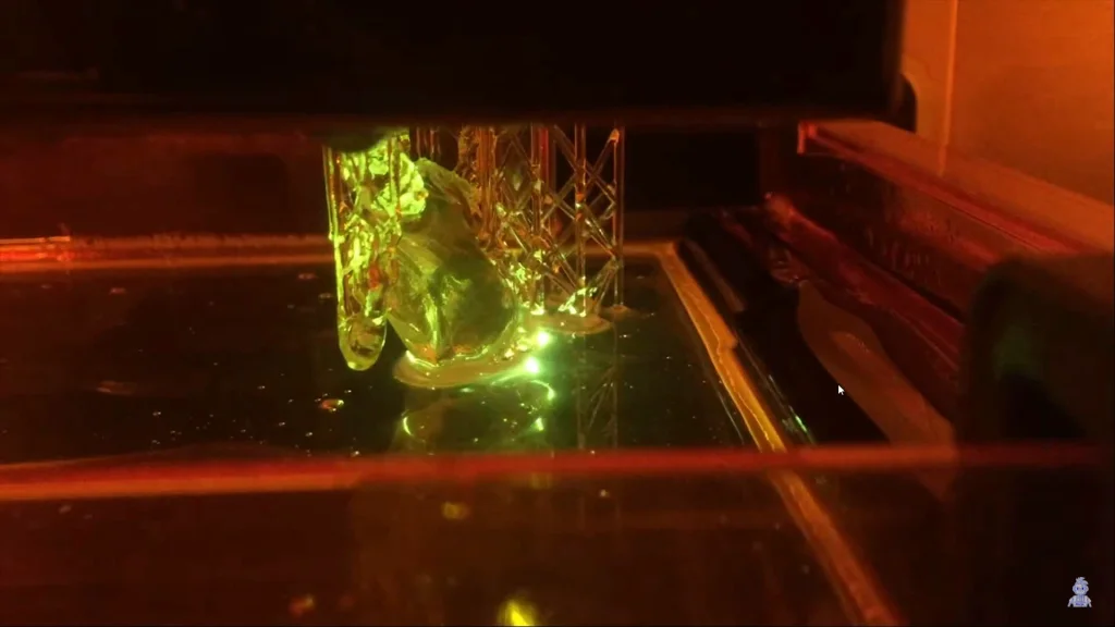 Once the parts are complete they need to be cleaned in IPA (isopropyl alcohol). Cleaning the parts in tubs of IPA will need to be in a well ventilated area as the fumes can be hazardous. When the parts are cleaned they need to be cured further in a UV oven. This means if there is any excess resin still stuck in grooves they will cure too. Which means you can lose a lot of dimensional accuracy for engineered parts. But for organic sculptural models this technology is great for capturing the fine details. SLA requires Support structures which can scar the surface areas it is attached to, so some post production will be needed to clean this surface.