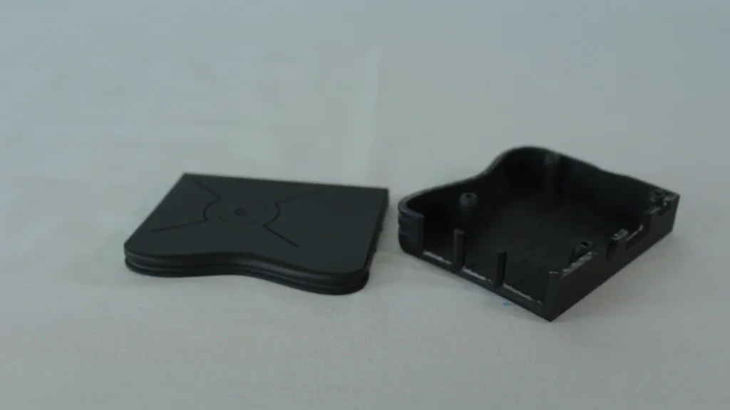 We got our parts printed on a Form 2 printer by JJ Industries. For our flat cases SLA was not the best technology. Large Flat surfaces show off all the defects and pause lines. The support struts also left marks which needed to be sanded down. This means it need to be finished and painted to make it presentable. the model was warped a little too as it still need to cure further until it gets its full rigidity. So for this type of model SLA was not the best choice. But or organic and high detailed models SLA is perfect.
