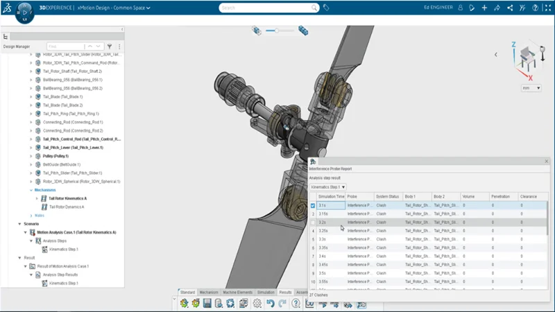You can use the Interference Probe to check clashes between moving mechanisms and see a live animation of the clashes. In this update, we’ve added an Interference Probe Report under the Results tab on the toolbar that records the time(s) and/or instances of the clash so you can easily view clashes and make the necessary design changes.