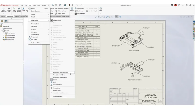 Quickly toggle the visibility of text expressions for all properties on a drawing sheet, making it easier to identify property links. This eliminates the need to hover over annotations, providing a faster way to review and manage property expressions in drawings.