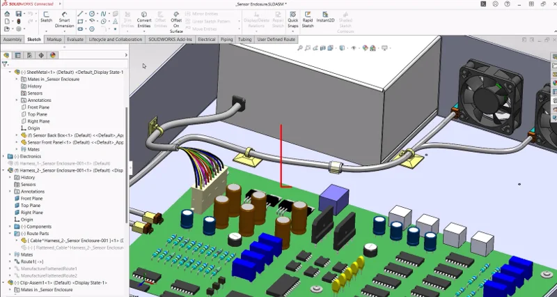 You can now use assembly-based clips, mounts, and hangers, in addition to part-based design, to locate tube and electrical routes in SOLIDWORKS Routing. Snap virtual routes into and out of clips, mounts, and hangers to complete the virtual twin of the overall product design.