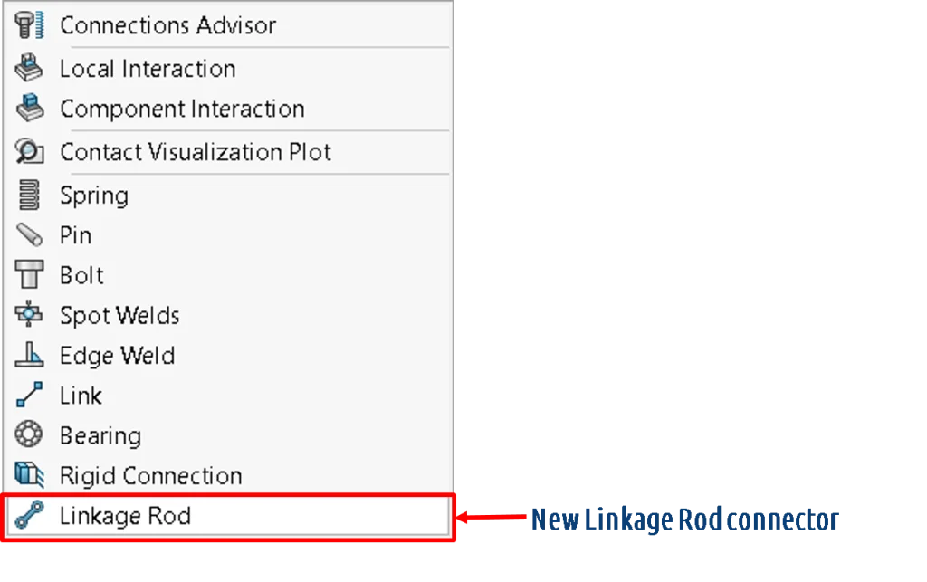 Before I explain what this new connector can do, you need to know that using connectors is a fantastic way to simplify analysis and save you time, without sacrificing accuracy. Connectors allow you to simulate the desired mechanical behavior without having to create the detailed geometry or define contact conditions. Since connectors are virtual, you don’t need to model the physical 3D geometry to represent them. As a result, no mesh nor stress calculation is needed. This saves you a ton of time.