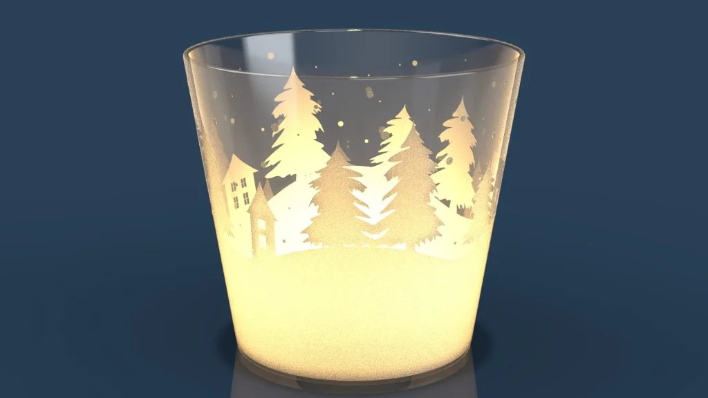 For this SOLIDWORKS tutorial, I decided to create a festive themed tealight holder that was made of glass. The wrap feature of the design was used to create a frosted glass appearance to the holder, so that when it is rendered you see a clear design on the glass. The winter themed design is created as a DXF and imported to SOLIDWORKS. The tealight used in the tutorial is available to download from the blog along with the vectors used, the finished DXF file and the truncated cone template DXF. All the files needed for this tutorial are available to download here.