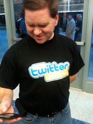 As a sign off for Sunday I want to try pushing Twitter on those of you who haven't crossed over yet. The overwhelming consensus from Tweeps at this conference has been that Twitter as a service is great for this industry. Information, instant help, links to knowledge, and good old networking are the most obvious reasons to get on Twitter, but if you're truly into it a customized shirt will really showoff your geek status, below is @RickyJordan sporting his. If you're new to it, try searching for the #Sww10 hashtag or following me at @CbMcandrew.Things will really get going in the morning with Jeff Ray's keynote (Hey Jeff, give me a shoutout!). Thanks again to everyone I got to meet today and I'm sorry if I forget your name/face in the coming days, and if I haven't yet met you don't be afraid to say hello.