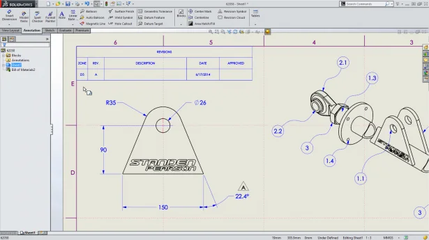 Drawing zones are now available in SOLIDWORKS 2015. These zones can be referenced in notes, balloons, view labels and in the revision table. Zones can also exist on every sheet of a SOLIDWORKS Drawing file.