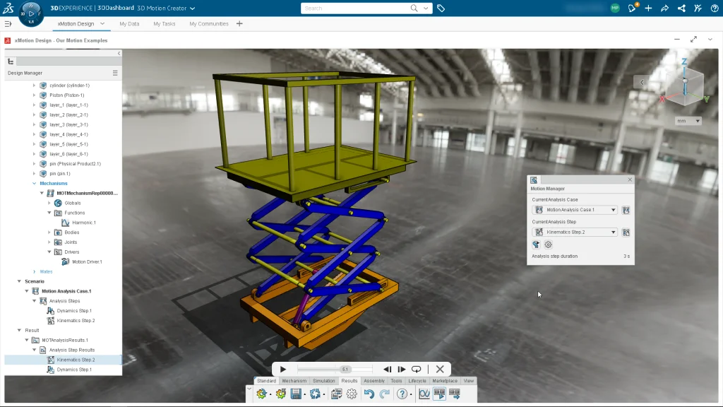 As mentioned, you can collaborate on motion analysis results and share animation of kinematic or dynamic analysis with peers via the 3DEXPERIENCE platform. Even management can review motion studies without the need for specialized software—speeding the time to decision.