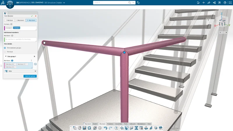 We’ve expanded our corner trim functionality for complex corners with options for trimming the up-to-body or 3-way miter when working on structures. This enables you to fully define your 3-way corner intersections so that the model accurately reflects how that corner would be manufactured.
