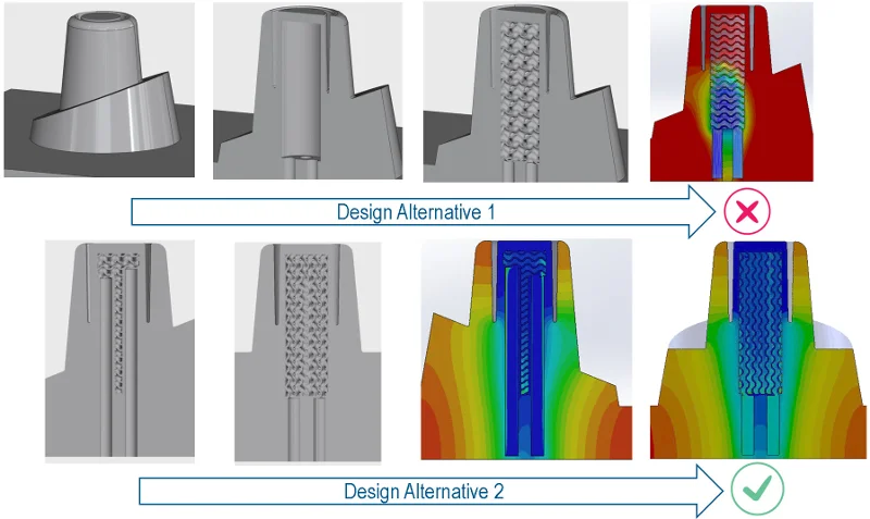 Improving mold design cooling efficiency with thermal simulation comparison of two different lattice design alternatives