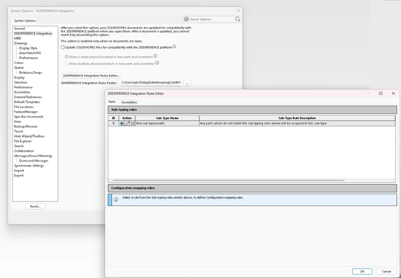 If you have very specific use cases or company standards to follow where the system-coded update logic does not give you the desired result, the recommendation is to use the new rules editor, where you can create user-defined update logic. Unlike the system-coded update logic, which applies to parts and assemblies, the 3DEXPERIENCE Integration Rules Editor allows you to define different update logic for both file types, if needed.