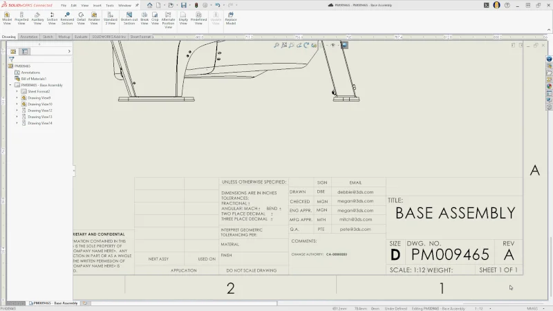 Drawing stamping now includes maturity status information, reflecting real-time PLM property updates in drawings. In addition, you can add attributes, including user names and email addresses, improving traceability.