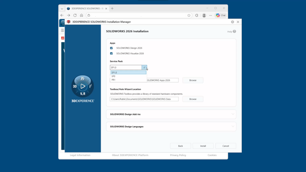 Users can now install multiple versions of SOLIDWORKS Design to collaborate with partners using a different SOLIDWORKS Design version. In addition, users can now quickly and easily create shortcuts and modify existing installations. In SOLIDWORKS Design 2026, you can install SOLIDWORKS 2025. Then, in SOLIDWORKS Design 2027 and beyond, you can install the two previous versions.