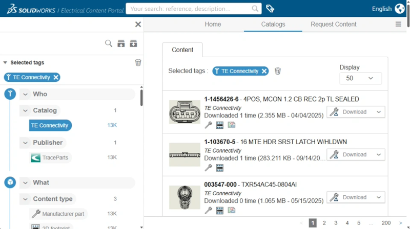 We have published tens of thousands of fully detailed TE Connectivity electrical components directly inside the Electrical Content Portal (ECP). All associated data, including metadata, symbols, footprints, and 3D models, are now stored and delivered natively from the ECP, replacing the former TraceParts website viewer.