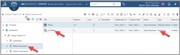 Add an existing Physical Product to the Metal Components folder. Use the Bookmark Editor Widget.