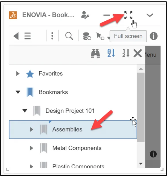 Select the Assemblies folder from the Bookmark Editor Widget.