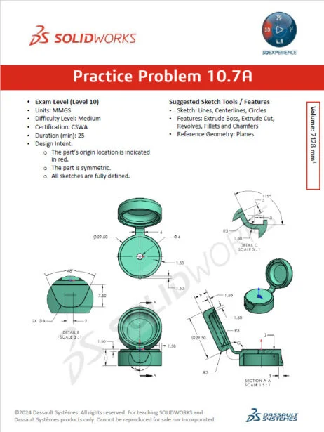 These problems also help students prepare for the SOLIDWORKS Certified Associate Exam. The SOLIDWORKS Practice Problems are divided into 10 sections.